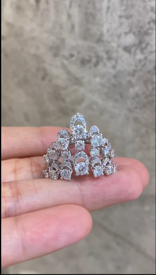 Hollow-out visual, making each diamond feel like it is floating between the fingers, radiating its own light.